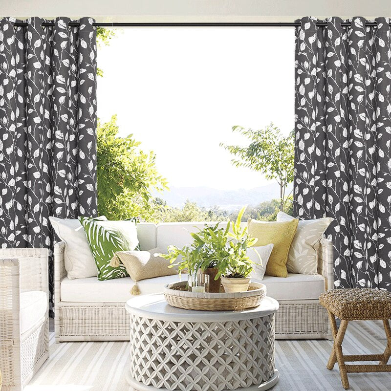 Verwandeln Sie Ihren Außenbereich mit dem Außenvorhang Kutra wasserabweisend mit Blättermotiv