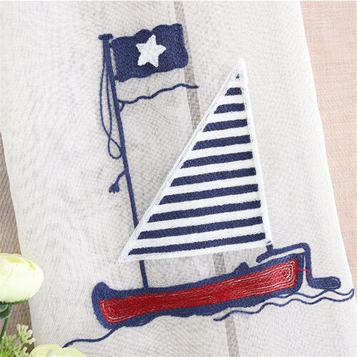 Verleihen Sie Ihrem Zuhause maritimes Flair mit der Gardine Comaile mit Segelboot-Stickerei