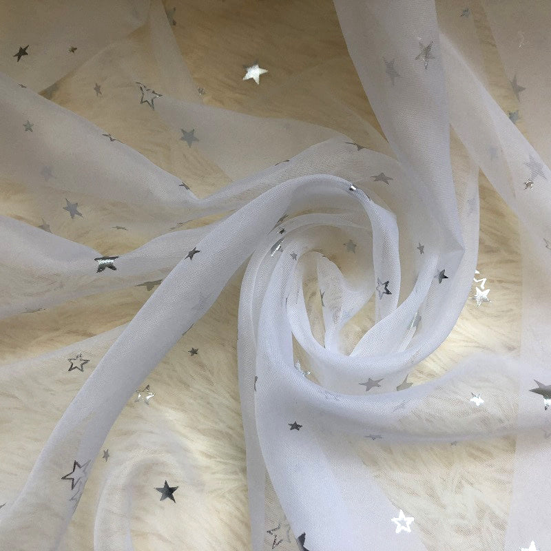 Zauberhafte Gardine mit silbernen Sternen fürs Kinderzimmer