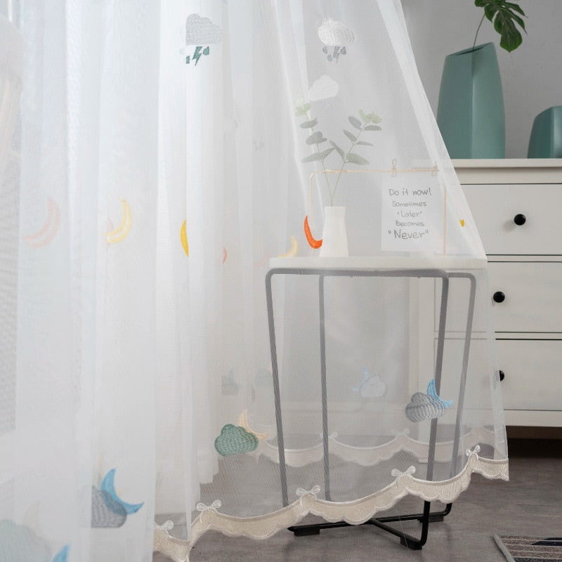 Verzaubern Sie das Kinderzimmer mit unserem magischen Voile-Vorhang mit bunter Stickerei