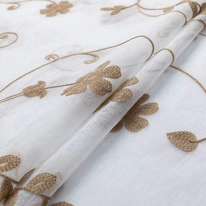 Vorteile Ihrer neuen Leinenoptik Gardine mit Blumenranken Stickerei