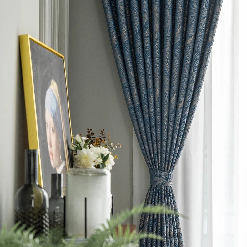 - **Einzigartige Struktur:** Die feine, wellenförmige Textur verleiht dem Vorhang eine besondere Eleganz und Tiefe.