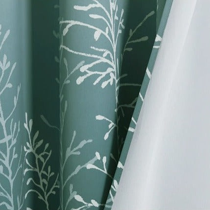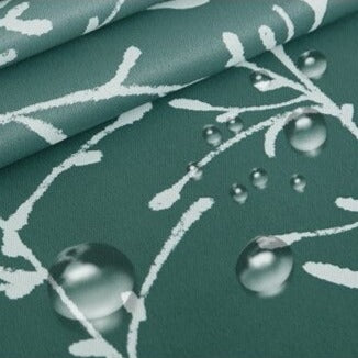Was diesen Vorhang so besonders macht, ist sein atemberaubender Farbverlauf. Er beginnt oben in einem zarten, luftigen Mintgrün, das an frische Frühlingsblätter erinnert, und geht dann nahtlos in ein sattes, beruhigendes Dunkelgrün über. Die kunstvoll gestalteten, weißen Ranken und Blätter, die sich vom unteren Bereich des Vorhangs nach oben schlängeln, wirken wie von der Natur selbst gemalt und verleihen ihm eine elegante Leichtigkeit. Dieser visuelle Effekt imitiert die Schönheit eines Waldes oder eines Gartens und bringt so ein Stück Natur direkt auf Ihre Terrasse. Perfekt für alle, die Wert auf Ästhetik und eine harmonische Umgebung legen.