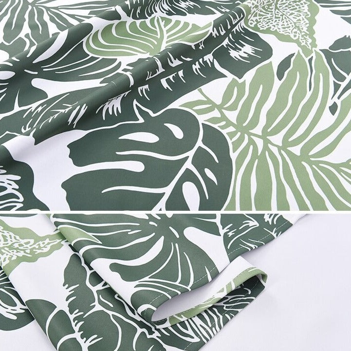- Auffälliges Dschungelmuster: Üppige grüne Blätter auf hellem Hintergrund, die ein lebendiges und tropisches Ambiente schaffen.