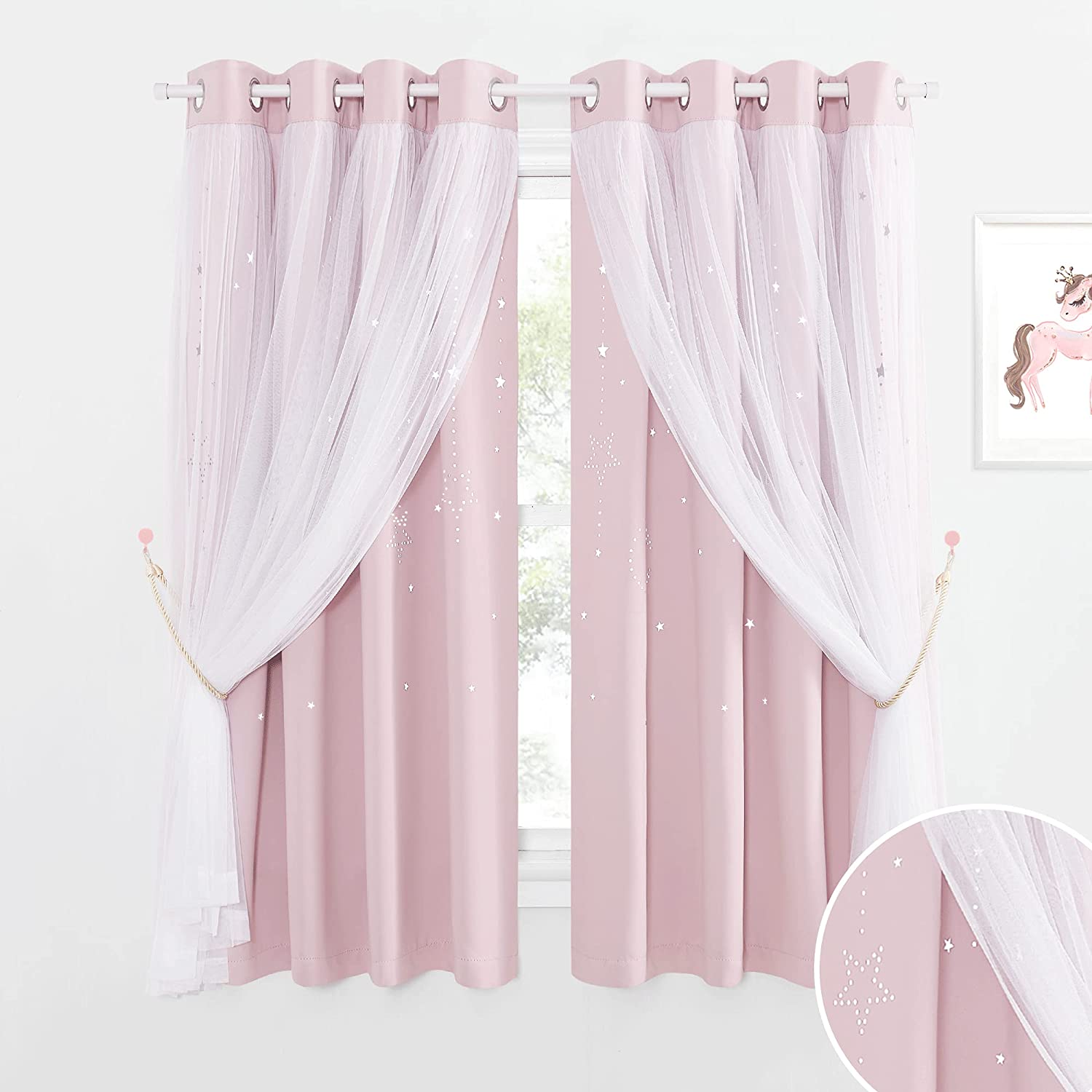 - Doppellagiges Design: Robuster rosa Verdunkelungsvorhang und eine darüberliegende, transparente Tüllschicht für maximale Flexibilität bei Licht und Privatsphäre.