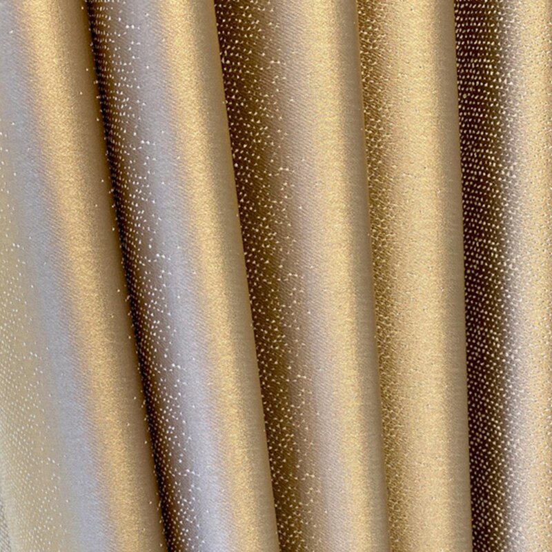 - Luxuriöse Optik: Die Kombination aus dem warmen Goldton und dem zarten Glanz macht diesen Vorhang zu einem echten Blickfang, der Luxus und Stil ausstrahlt.