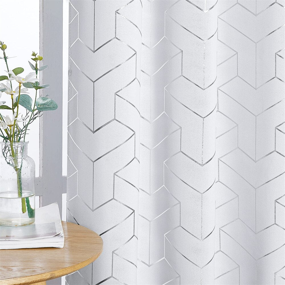 Unser Verdunkelungsvorhang Weiß mit 3D-Muster bietet Ihnen weit mehr als nur eine ansprechende Optik. Er ist Ihr zuverlässiger Partner für einen erholsamen Schlaf, indem er unerwünschtes Sonnenlicht und störende Straßenlaternen effektiv aussperrt. Die spezielle Webart und das hochwertige Material sorgen nicht nur für optimale Verdunkelung, sondern tragen auch dazu bei, die Raumtemperatur zu regulieren – im Sommer bleibt es kühler, im Winter wärmer. Das einzigartige geometrische 3D-Muster in schimmerndem Silber auf strahlend weißem Grund fügt sich nahtlos in moderne, skandinavische oder minimalistische Einrichtungsstile ein und wird garantiert zum Blickfang in jedem Raum. Erleben Sie, wie Funktionalität und Design perfekt harmonieren und Ihr Wohnambiente aufwerten.